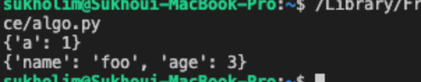 위 print_kwargs라는 함수를 통해 입력값 a=1 또는 name='foo', age=3이 모두 딕셔너리로 출력할 수 있다. 즉, **를 매개변수 이름 앞에 붙이면 매개변수 kwargs는 딕셔너리가 되고 모든 key=value 형태의 결과값이 그 딕셔너리에 저장된다.