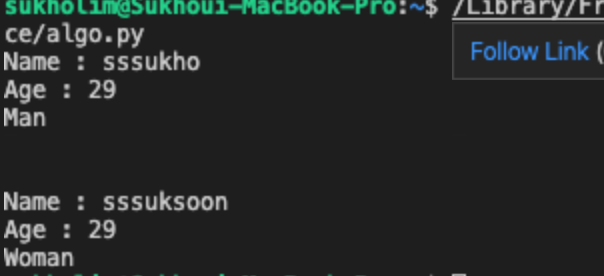 만약, 함수내에 리턴을 위와 같이 a+b, a*b 두 개로 작성하였을 경우에는 튜플 값으로 리턴을 한다. 만약 이 두가지의 리턴 값을 하나의 튜플로 리턴을 받는 방식이 아닌, 각각의 값으로 구분되어 리턴을 받고 싶다면, 변수 두 개에 위와 같이 리턴을 받으면 된다. 개인적으로 경험했던 이전의 언어들과는 또 다른 느낌이어서 확실히 신기하다.
