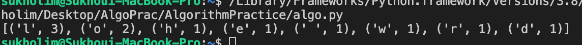 collections 내 Counter 클래스를 사용하지 않는다면 다음과 같은 형태로 주어진 단어에서의 갯수가 가장 많은 알파벳과 그 개수를 구하는 코드를 작성할 것이다. 하지만 Counter 클래스를 사용한다면 다음과 같이 작성할 수 있다.