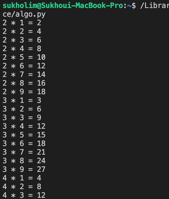 for (x, y) in [(x, y) for x in range(2, 10) for y in range(1, 10)]: